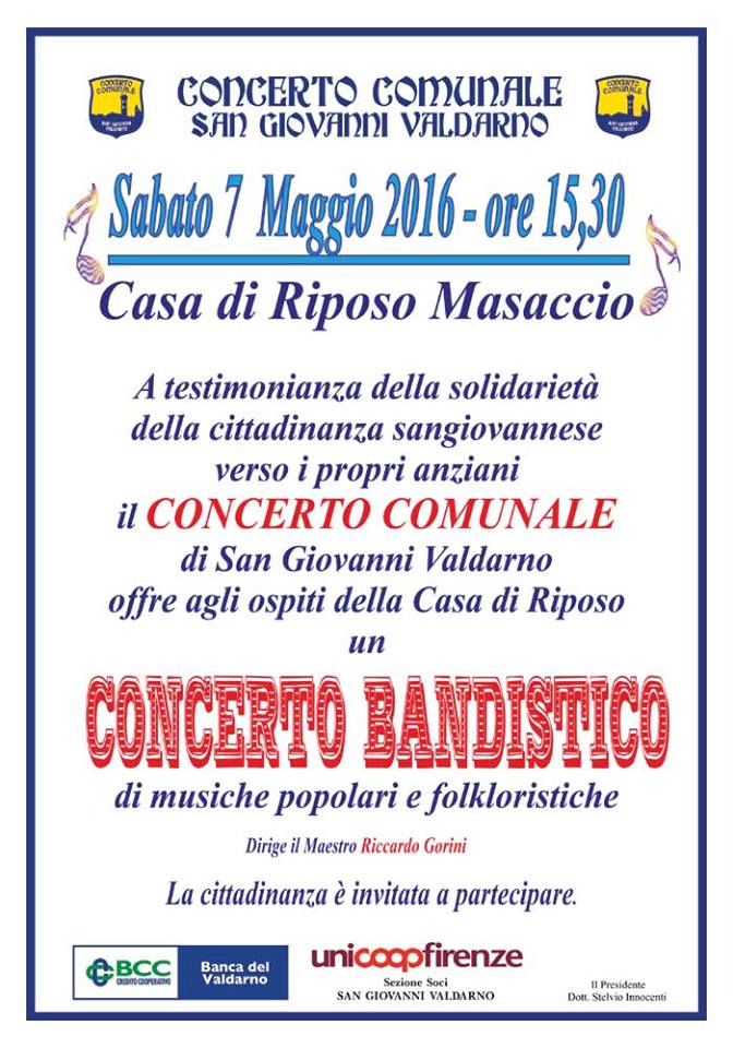 7 maggio alla Casa di RiposoPosted on 5 Maggio 2016By Andrea UrbiniLeave a commentSabato 7 Maggio ore 15:30 concerto alla Casa di Riposo di San Giovanni. Filed under: Concerti