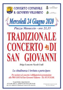 Non sarà un concerto come al solito per l’impossibilità di prepararsi e ritrovarsi per le prove, sarà comunque un modo per ripartire con la musica e le tradizioni di San Giovanni. Saranno adottate le misure di sicurezza previste per cui i musicanti si posizioneranno distanziati.