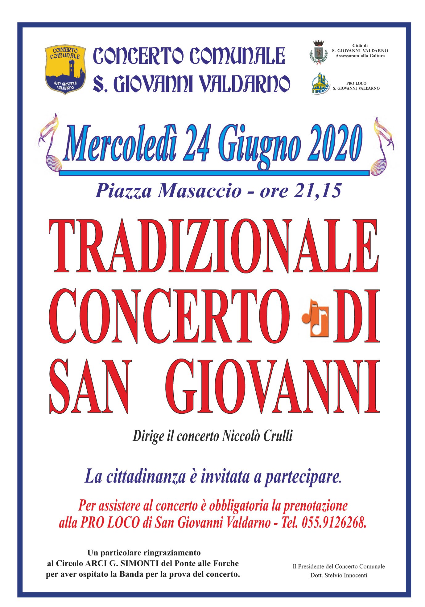 Mercoledì 24 giugno ore 21.15 la banda si esibisce in piazza Masaccio per il tradizionale Concerto di San Giovanni.